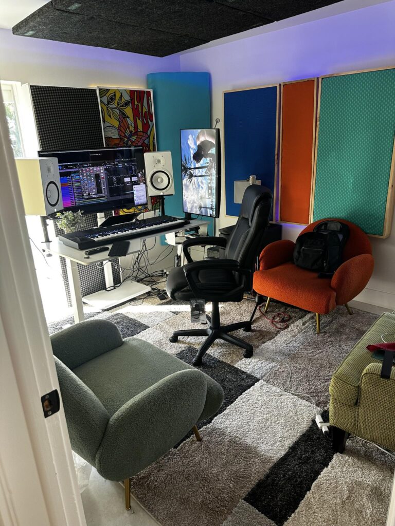 Make the most of your space with an organized, functional setup. Include a desk for your computer and instruments, shelves for storage, and simple decor to personalize the area.