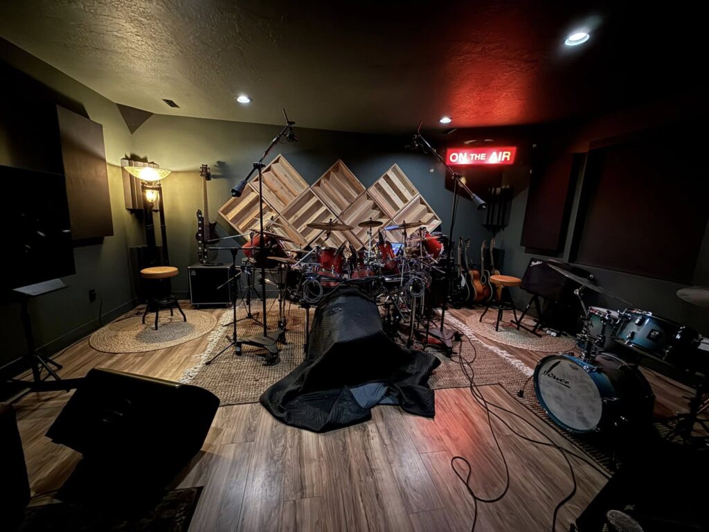 Soft tones help reduce visual strain inside a music studio. Muted colors and gentle lighting create a calmer mood. The room feels less technical and more welcoming.