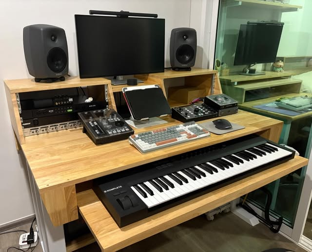 Let’s say you have a lot of controllers that need a dedicated home. This layout often includes custom desk tiers to keep your knobs and faders within reach. Sticking to a logical flow from left to right can help you work faster. The main point is to keep your physical workspace as organized as your digital one.