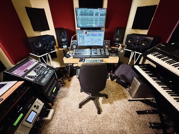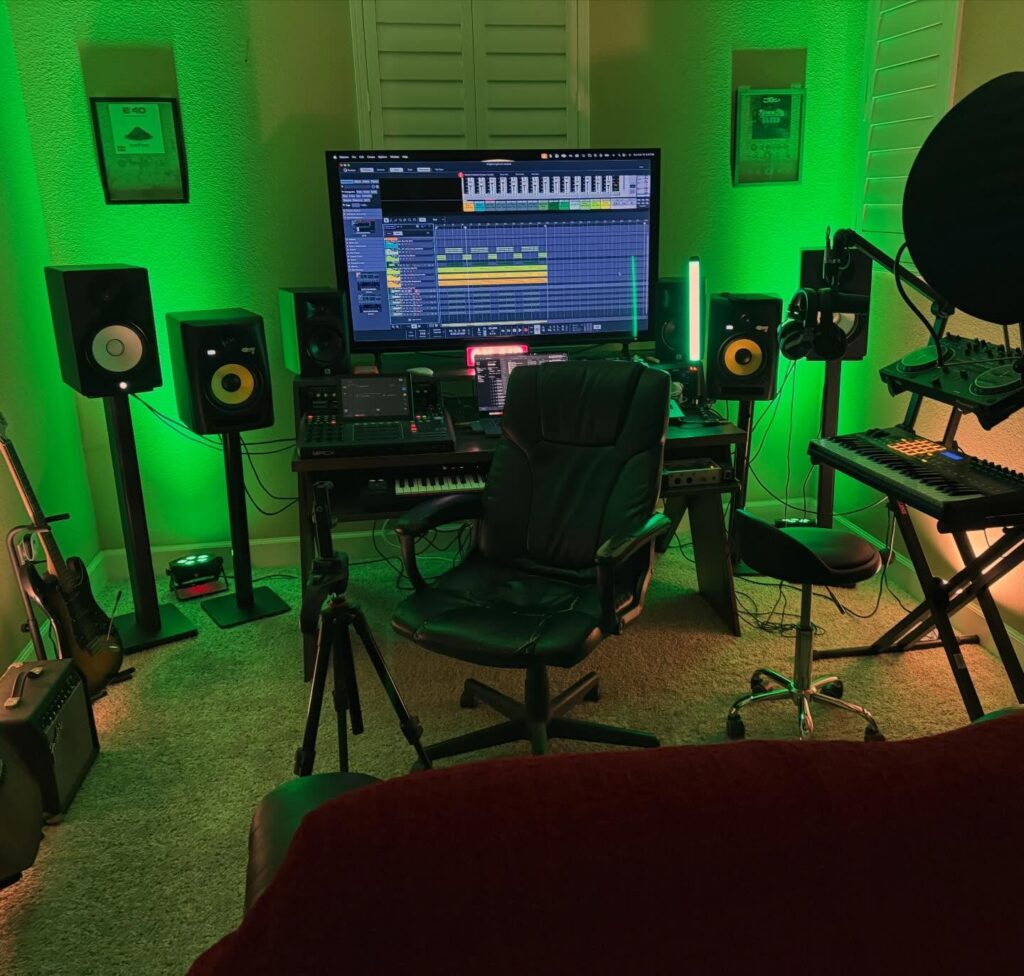 Ideally, your studio should feel like an inspiration hub that reflects your unique musical style. This layout often includes a mix of instruments and comfortable seating for long writing sessions. Short sentences and a clear path to your main computer help keep the energy flowing well. Placing a rug on the floor can improve the sound and add a touch of comfort.