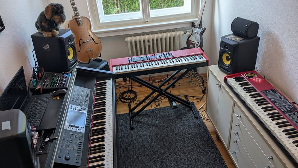 Imagine seeing all your favorite synths and guitars ready to play at any given moment. This layout commonly features several tiers of shelving to hold various keyboards and drum machines. It is wise to keep your audio interface in a central spot for easy plugging. Having everything connected means you spend less time troubleshooting and more time actually making music.